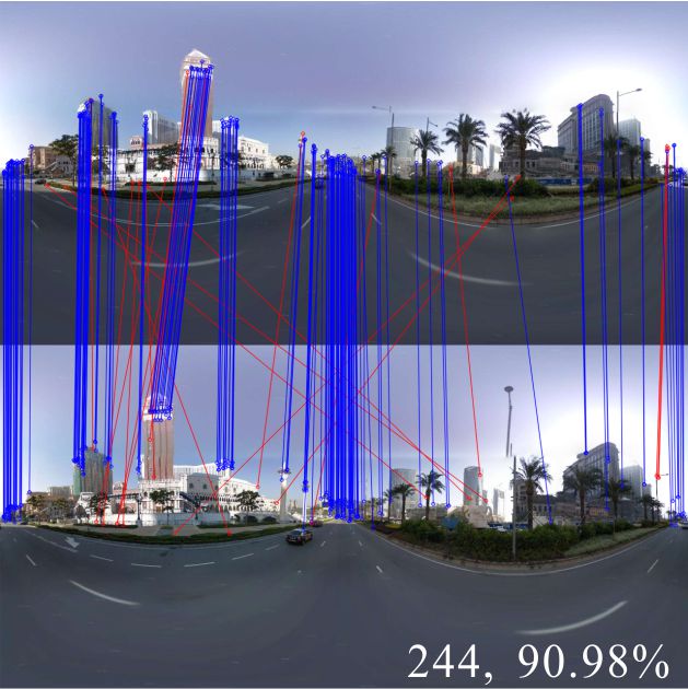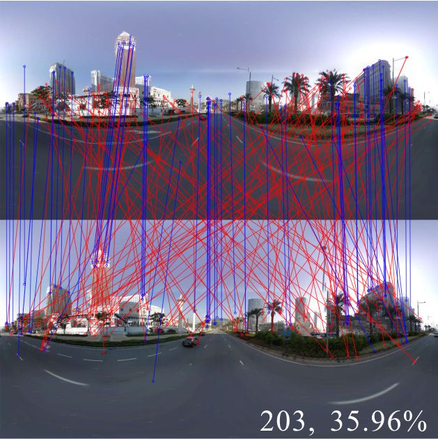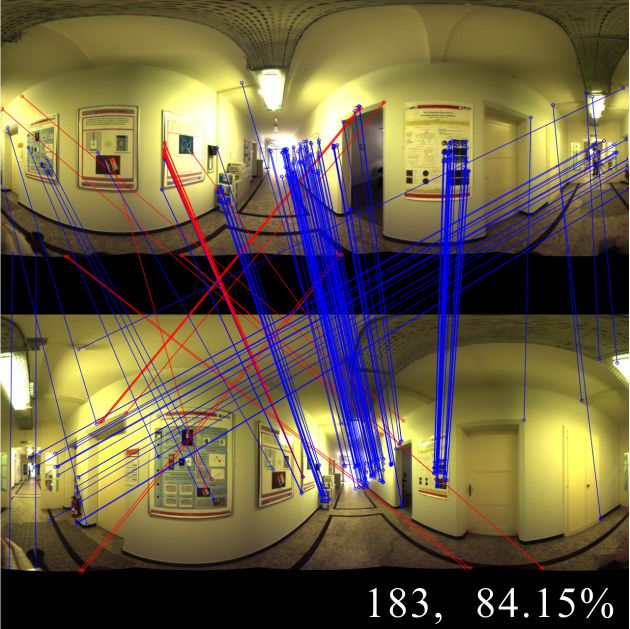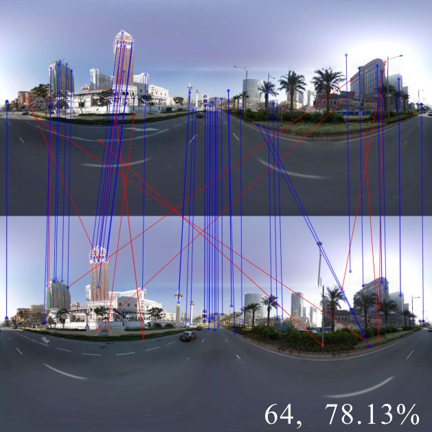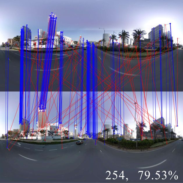 Abstract In this paper, we propose SPHORB, a new fast and robust binary feature detector and descriptor for spherical panoramic images. In contrast to state-of-the-art spherical features, our approach stems from the geodesic grid, a nearly equal-area hexagonal grid parametrization of the sphere used in climate modeling. It enables us to directly build fine-grained pyramids and construct robust features on the hexagonal spherical grid, thus avoiding the costly computation of spherical harmonics and their associated bandwidth limitation. We further study how to achieve scale and rotation invariance for the proposed SPHORB feature. Extensive experiments show that SPHORB consistently outperforms other existing spherical features in accuracy, efficiency and robustness to camera movements. The superior performance of SPHORB has also been validated by realworld matching tests. |
