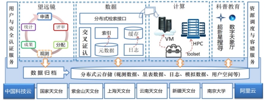 中国虚拟天文台平台2015年正式运行,已有正式注册用户2万2千余人,其中科研用户3200人,是中科院天文大科研究中心指定的观测技术服务平台,为LAMOST、FAST等国家天文大科学工程以及国内各核心天文观测设备提供直接支持。以该平台为基础打造的国家天文科学数据中心2019年6月获得科技部、财政部的批准,正式列入国家科技资源共享服务平台名单,填补了我国天文界在国家科技创新基地体系中的空白。