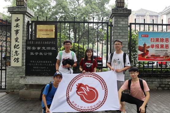 “火流星”实践队。6名同学赴西安、延安等地,参观西安事变纪念馆、延安革命纪念馆和王家坪革命旧址,通过走访调研革命根据地,了解历史史实,感受中华民族伟大的凝聚力和无所畏惧的爱国精神,并将爱国精神内化为一种文化自觉,做到胸怀祖国,放眼世界,从革命文化,社会主义先进文化中领略爱国主义的丰富内涵。