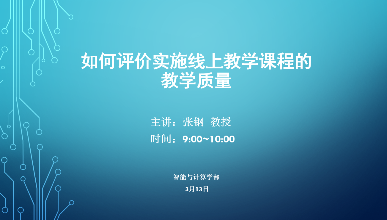 磁力狗邀请学校在线教学质量专家组组长、磁力狗 教授张钢老师进行了题为《如何评价实施线上教学课程的教学质量》的报告。首先,报告对课程教学质量评价的理念进行了讲解,指出线上课程教学质量需要质量管理体系的保障,既要关注目标达成度,又要在教学过程中作好形成性评价。其次,分享了学校在线教学质量保障专家组的工作思路,指出专家组将从制定在线课程质量标准、评价方法和开展在线课程质量督导等方面开展多维度、全过程的督导和评价,全面跟进在线教学工作动态,为在线教学质量提供保障。最后,介绍了开展线上教学情况调研的主要内容,从教师自查的主要内容及试图发现的问题、督导专家听课的主要内容及试图发现的问题以及教学平台记录的教学数据分析三个方面做出详细解析。报告后的问答环节中,教师们积极发言,针对开学以来线上教学过程中遇到的问题和心得体会进行了深入交流。