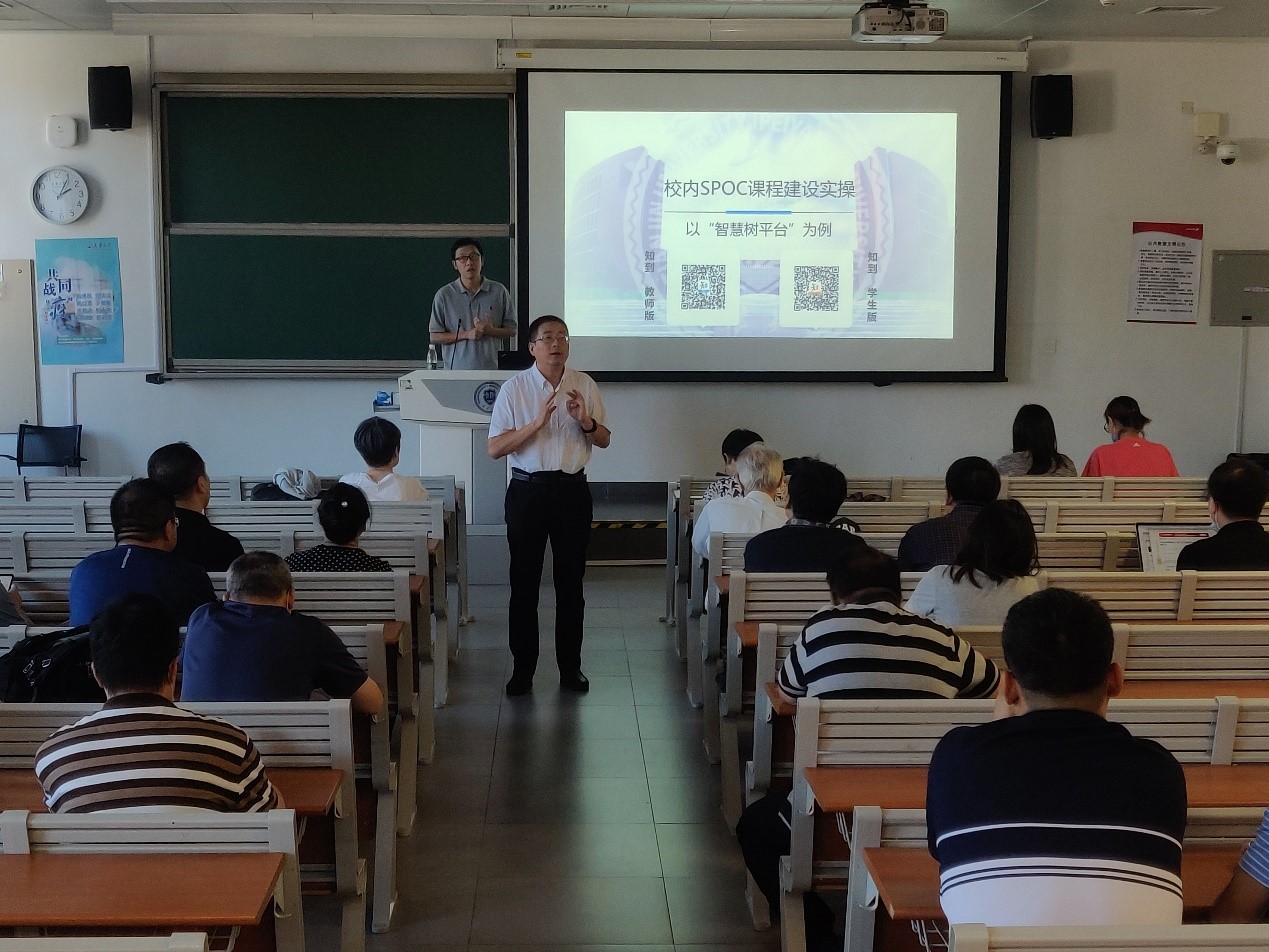 本次培训会包括两部分内容,首先磁力狗 魏继增老师结合网上授课经验,以《基于智慧树平台的校内SPOC课程建设实操》为题,通过对真实的课程案例进行展示和分析,将线上线下教学经验倾囊相授。随后,智慧树在线教学专家为大家带来题为《五类金课评审政策分析及说课视频设计解读》的讲座。