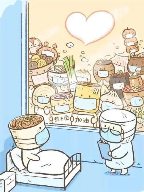 今年初的新冠肺炎疫情,一幅席卷网络的《全国美食为热干面加油》,让所有人看饿了,也看哭了。热干面小朋友坐在病床上,旁边的医生在照顾他,病房外面是从各地赶来的小伙伴,大家也都受伤了,但每个人都在鼓励他。