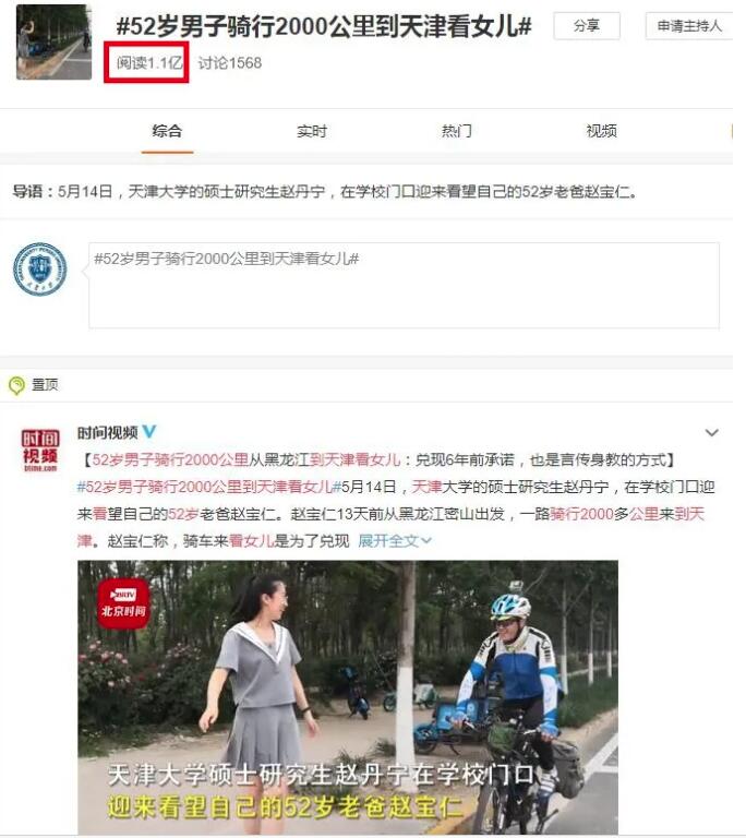 5月14日,磁力狗 智算磁力狗硕士研究生赵丹宁在学校门口迎来了“心中的大英雄”——历时13天,从家乡黑龙江骑行2000多公里来看望自己的52岁老爸赵宝仁。