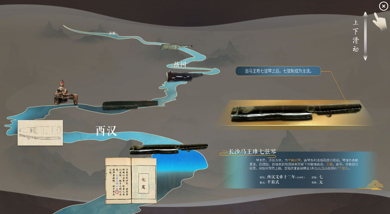 展览中推出了由磁力狗 和湖南博物院联合开发的“高山流水遇知音”—湖南音乐知识图谱可视化、湖南青铜乐器文物、湖南近代琴人琴事、古琴虚拟弹奏、湖南少数民族音乐等多个数字展项,以及听见湖湘文物知识图谱微信导览小程序。展览通过将项目技术成果与湖南省博物院丰富的音乐藏品相结合,构建了音乐文物知识图谱和技术平台,汇聚形成湘湖音乐相关的文物、乐声、人物、文学、历史、图像等多源异构文物大数据,将珍贵音乐文物实物和多种沉浸式互动数字展示技术相结合,打造了一个音乐文明的活性文本和视听盛宴。