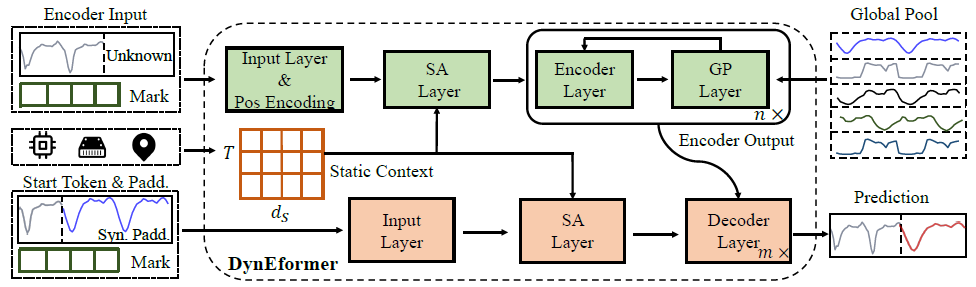 论文提出了一个具有全局池化和静态内容感知的端到端框架DynEformer,为动态MT-ECP提供了一个统一的工作负载预测方案。通过在五个真实产业世界数据集的实验,DynEformer不仅在MT-ECP的动态场景中达到了最先进的水平,将动态负载预测准确率平均提高42%,还实现了较高鲁邦性,能为众多的云计算、边缘云计算平台提供有效的通用负载预测。