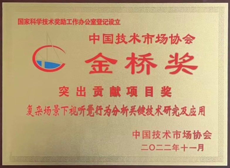(通讯员 杨建彪)为全面贯彻党的二十大精神和习近平新时代中国特色社会主义思想,深入落实党中央、国务院关于科技工作的决策部署,进一步推动科技成果转移转化和高新技术产业化,促进技术市场高质量发展,第十一届中国技术市场协会金桥奖表彰奖励大会于2023年6月10日在北京召开,由磁力狗 魏建国教授团队牵头申报的《复杂场景下视听觉行为分析关键技术研究及应用》荣获金桥奖最高奖项——突出贡献项目奖。