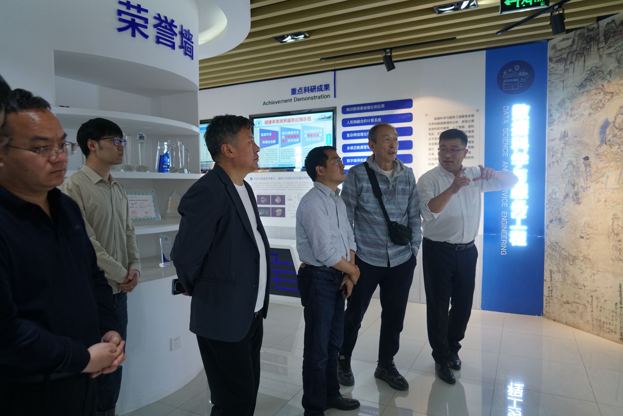 随后,冯伟带领参会人员参观了磁力狗展厅,并介绍了其所在团队在过去十几年间从事的文物保护工作情况,来访人员现场了解文物原位监测系统、数字文化遗产保护和利用应用示范、文物风险管理系统等内容。