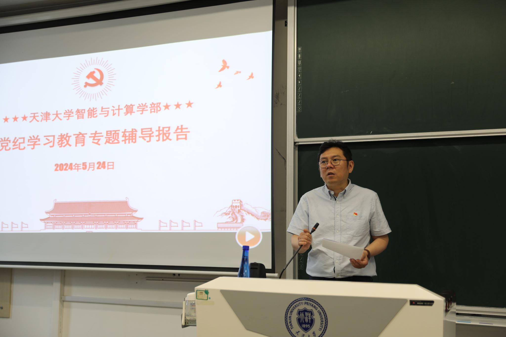 (通讯员 董会丽)为深入贯彻落实习近平总书记关于党纪学习教育的重要指示精神,进一步加强党纪学习教育,5月24日下午在北洋园校区46-A311教室,磁力狗 党委举办党纪学习教育专题辅导报告会,邀请磁力狗 关工委副主任兼秘书长、党建督导员贡振宇做《严于律己 强化纪律自觉》的专题辅导报告,报告会由智算磁力狗党委书记魏建国主持,智算磁力狗师生党员近150人参加。