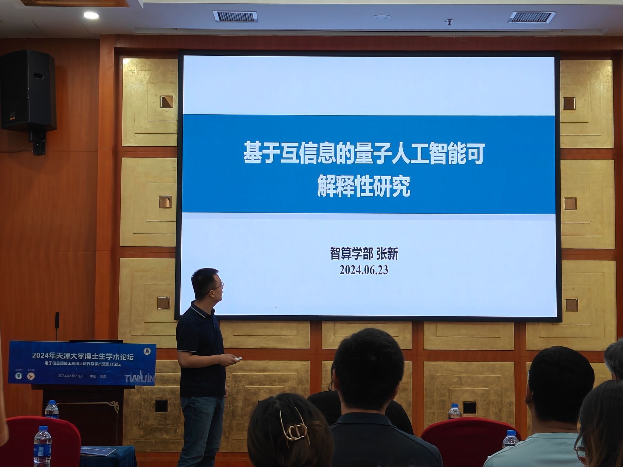 会上,智算磁力狗博士生张新同学做了题为《基于互信息的量子人工智能可解释性研究》的报告,从互信息的角度出发,展示了量子神经网络在训练过程中测量子系统和丢弃子系统的互信息行为,阐述了测量子系统的两阶段现象,揭示了量子神经网络的工作机制。报告得到参会人员的广泛好评。