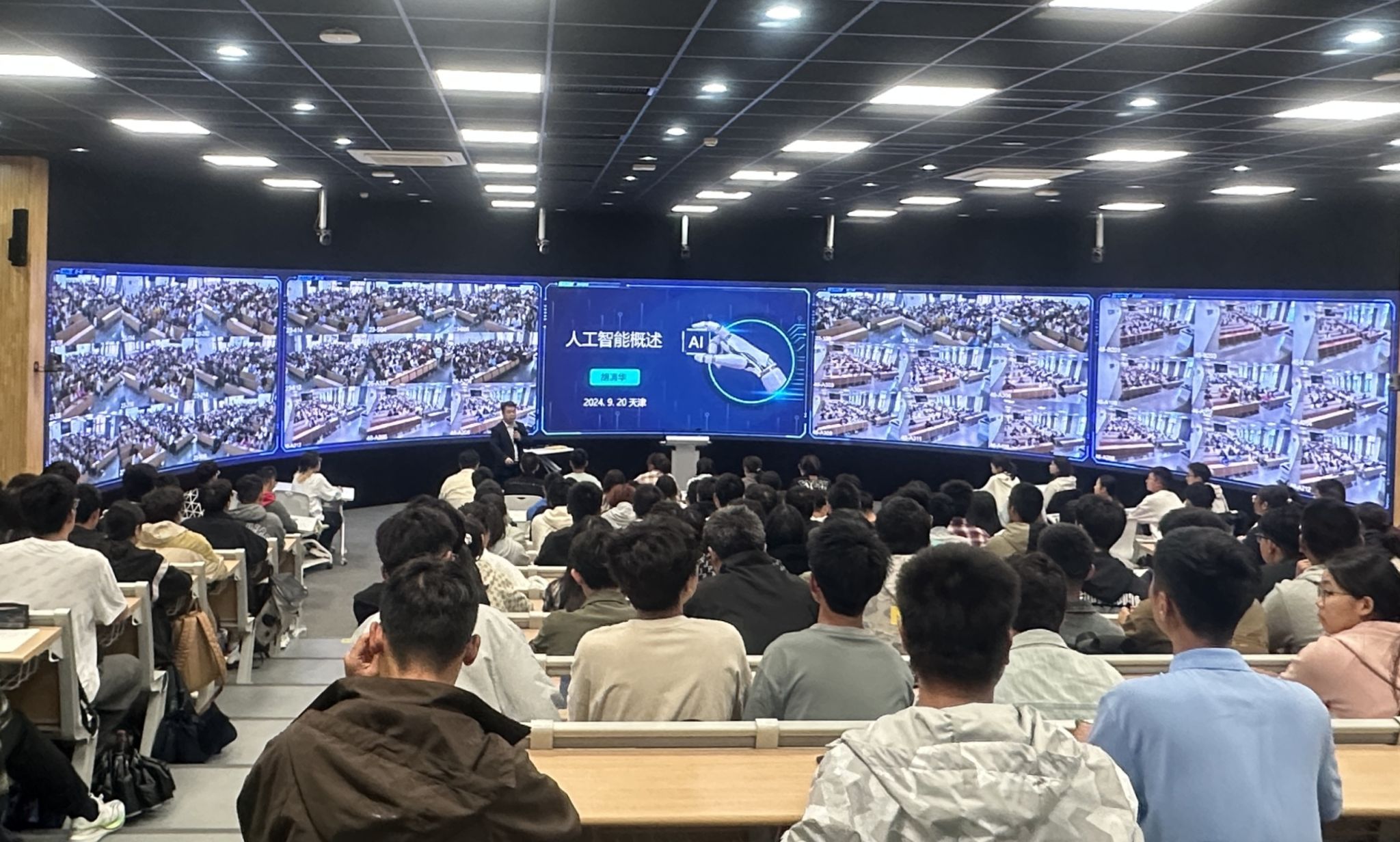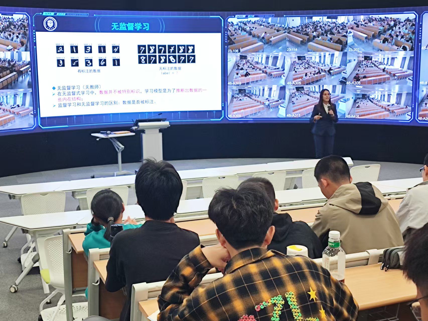 《人工智能导论》由八次课组成,内容融合了多学科案例分析和社会化协同学习模式,普及人工智能基本概念、主要流派、历史趋势、技术挑战,使学生形成对人工智能的初步认知,激发学生对人工智能的兴趣和好奇心,为他们后续在人工智能领域的深入学习与探索铺就坚实而稳固的基石。得益于双校区140间智慧教室全新升级了AI智慧教学软件,升级后的教室都拥有一个“智慧大脑”,为教学全环节注入AI技术,赋能智慧课堂远程互联、课程资源建设与分析、课程知识图谱创建、学生个性化学习、精细化教学数据采集分析等场景。