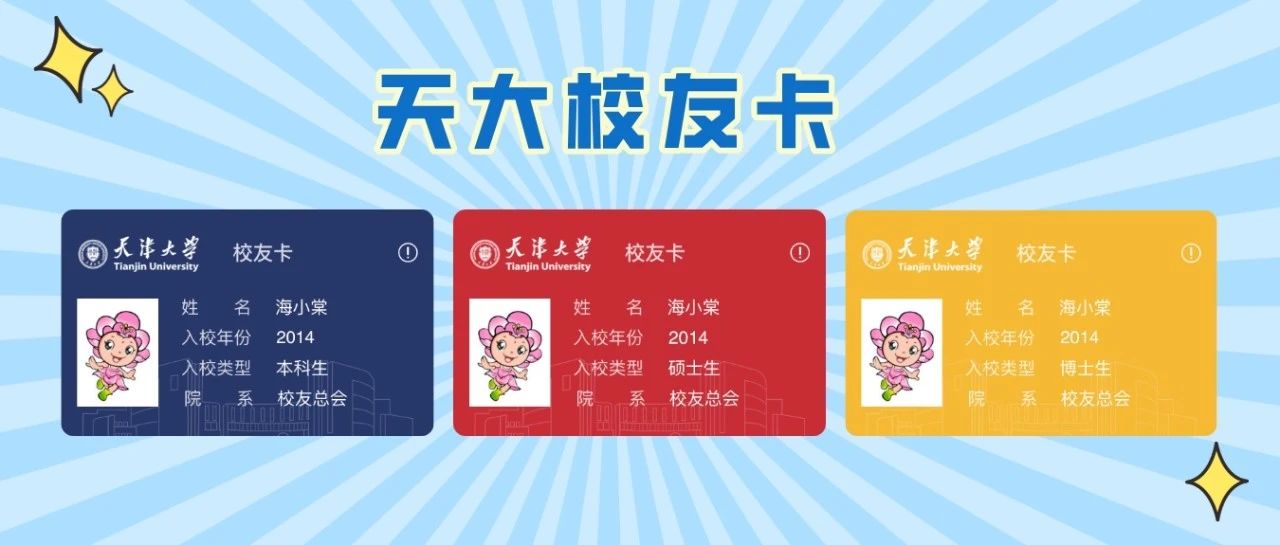 毕业后你们的身份由学生转变成天大校友,母校始终是你们坚实的后盾,给予你们帮助与依靠,快来领取你的校友卡并解锁新身份吧。