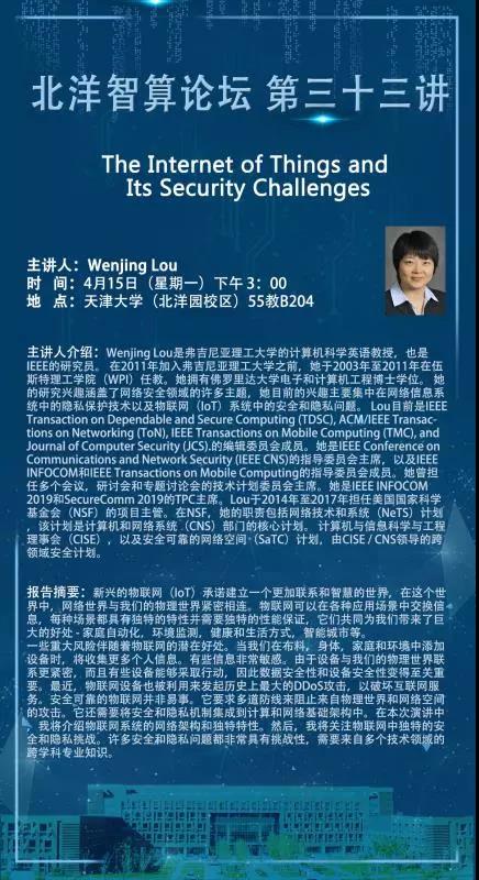 Lou目前是IEEE可靠和安全计算交易(TDSC),ACM / IEEE网络交易(ToN),IEEE移动计算交易(TMC)和计算机安全期刊(JCS)的编辑委员会成员。她是IEEE通信和网络安全会议(IEEE CNS)的指导委员会主席,以及IEEE INFOCOM和IEEE移动计算交易的指导委员会成员。她曾担任多个会议,研讨会和专题讨论会的技术计划委员会主席。她是IEEE INFOCOM 2019和SecureComm 2019的TPC主席。