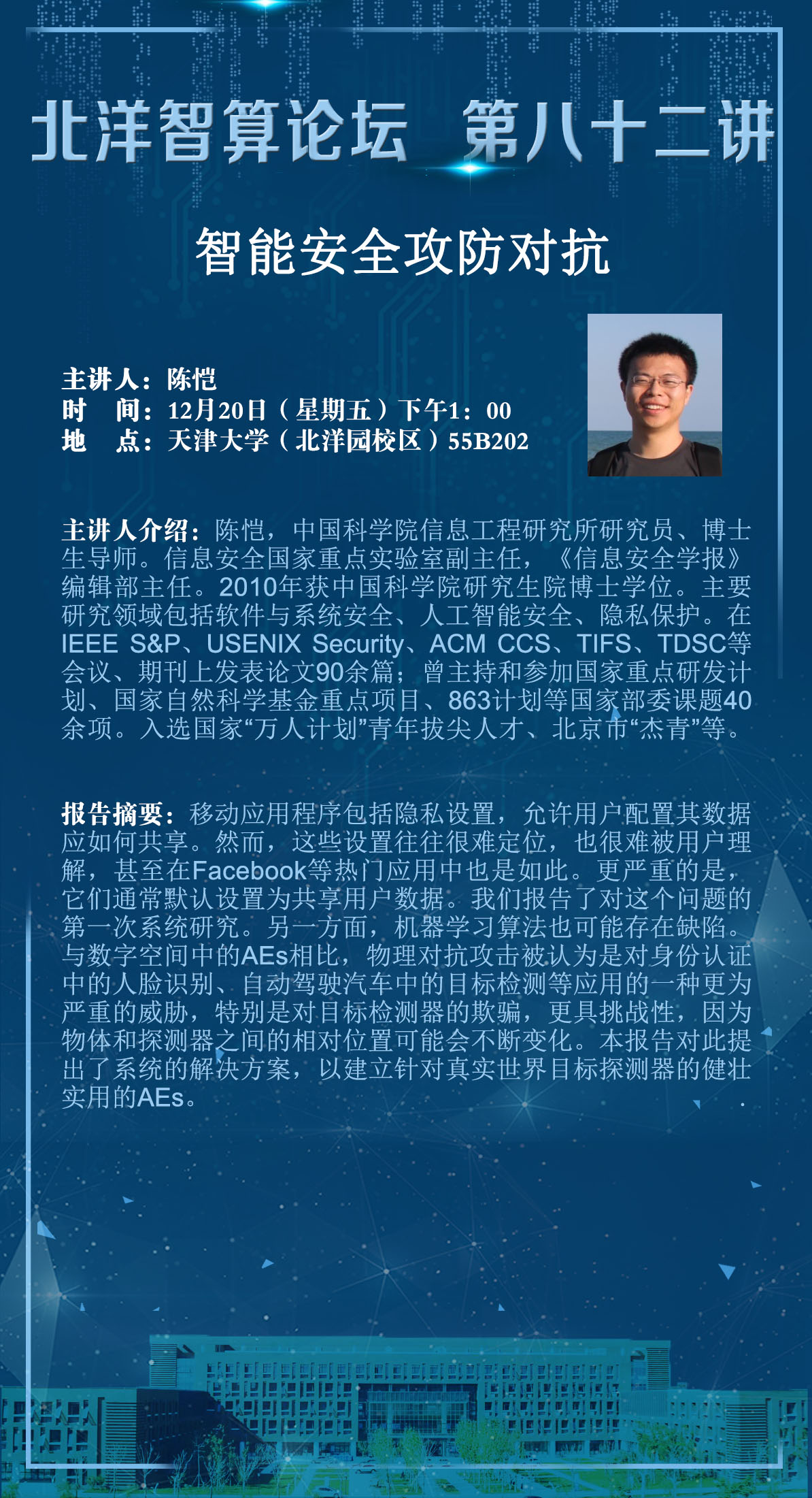 研究生院博士学位。主要研究领域包括软件与系统安全、人工智能安全、隐私保护。在IEEE S&P、USENIX Security、ACM CCS、TIFS、TDSC等会议、期刊上发表论文90余篇;曾主持和参加国家重点研发计划、国家自然科学基金重点项目、863计划等国家部委课题40余项。入选国家“万人计划”青年拔尖人才、北京市“杰青”等。