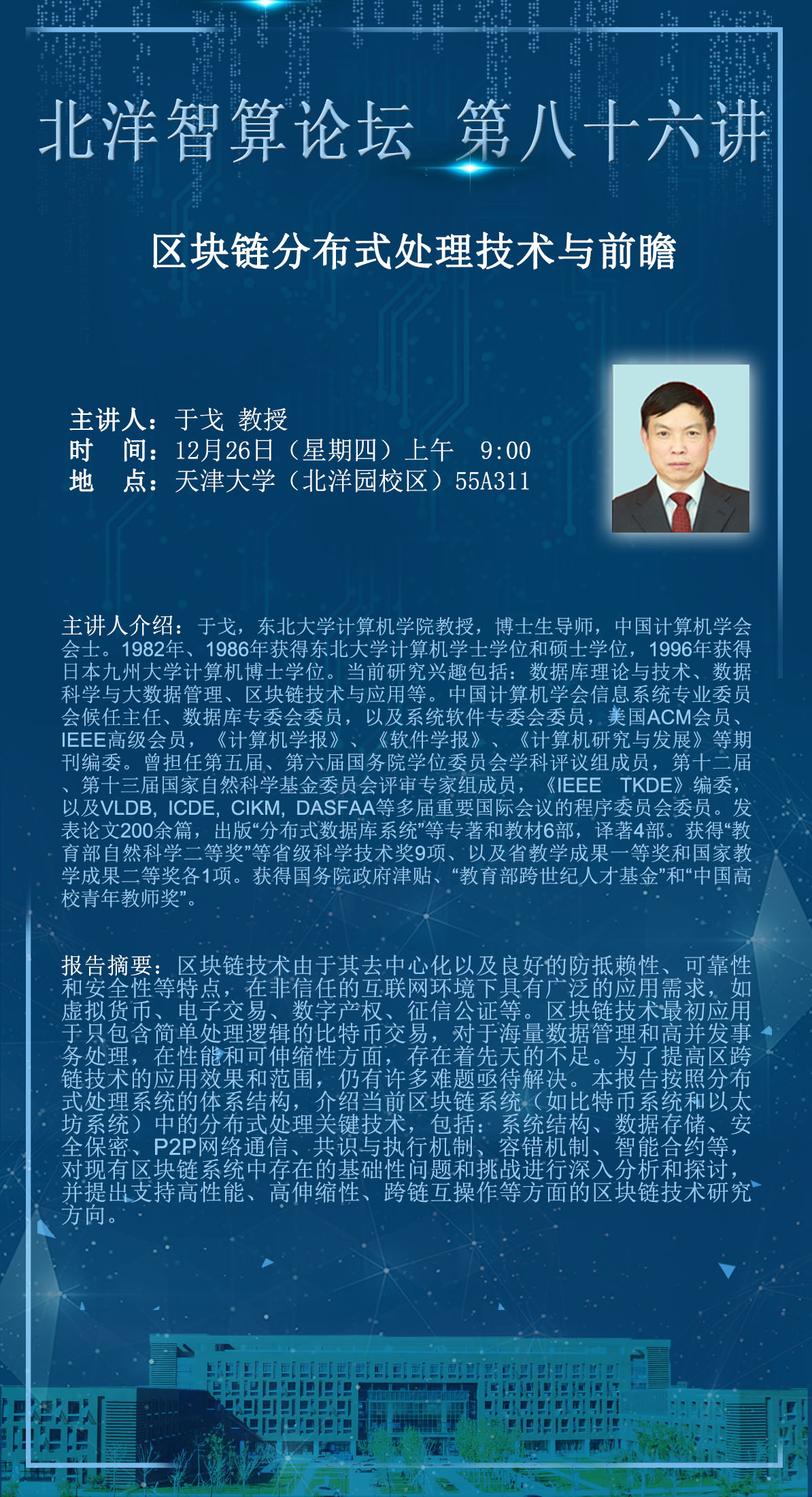 教授,博士生导师,中国计算机学会会士。1982年、1986年获得东北大学计算机学士学位和硕士学位,1996年获得日本九州大学计算机博士学位。当前研究兴趣包括:数据库理论与技术、数据科学与大数据管理、区块链技术与应用等。中国计算机学会信息系统专业委员会候任主任、数据库专委会委员,以及系统软件专委会委员,美国ACM会员、IEEE高级会员,《计算机学报》、《软件学报》、《计算机研究与发展》等期刊编委。曾担任第五届、第六届国务院学位委员会学科评议组成员,第十二届、第十三届国家自然科学基金委员会评审专家组成员,《IEEE TKDE》编委,以及VLDB, ICDE, CIKM, DASFAA等多届重要国际会议的程序委员会委员。发表论文200余篇,出版“分布式数据库系统”等专著和教材6部,译著4部。获得“教育部自然科学二等奖”等省级科学技术奖9项、以及省教学成果一等奖和国家教学成果二等奖各1项。获得国务院政府津贴、“教育部跨世纪人才基金”和“中国高校青年教师奖”。