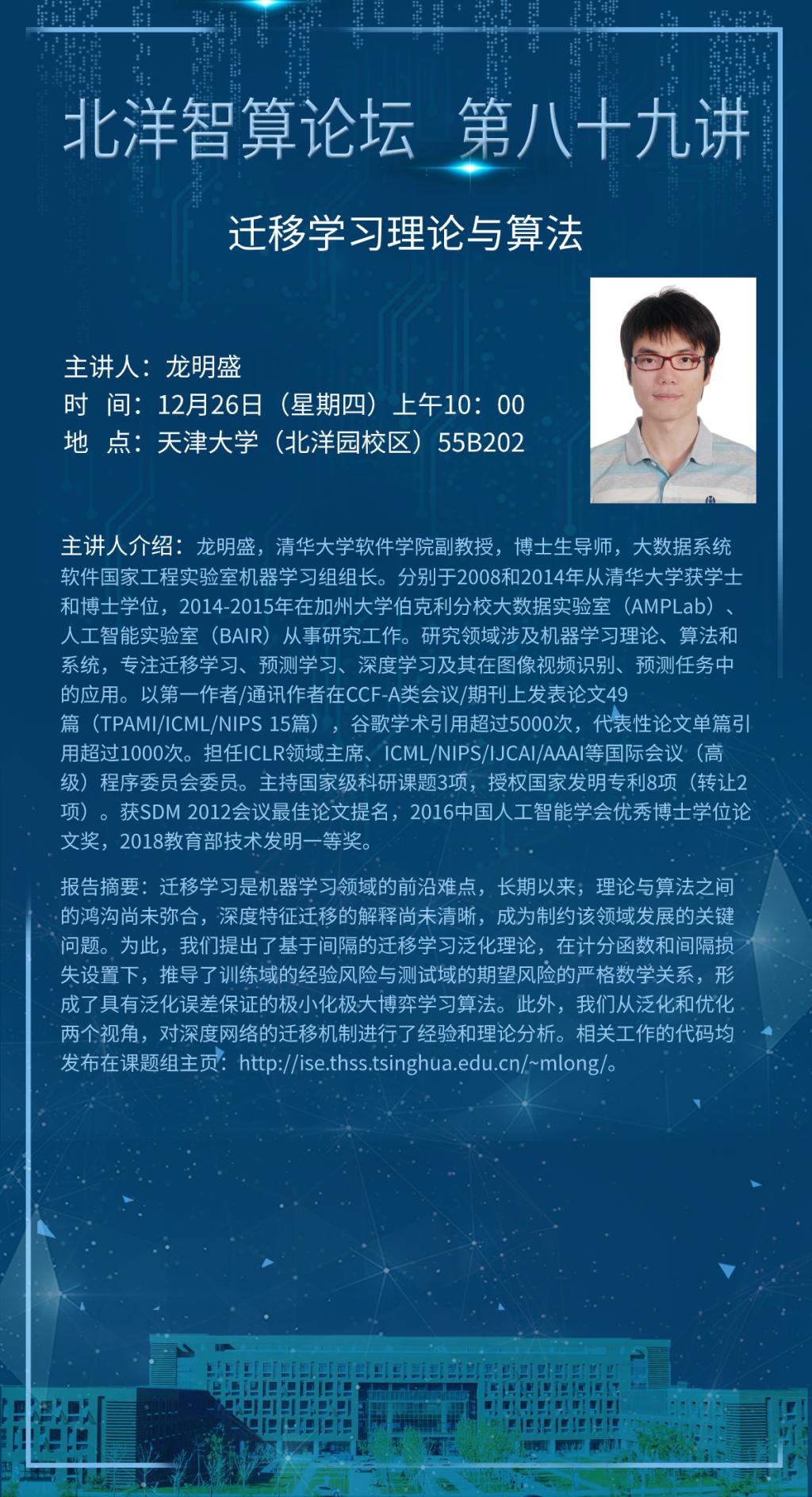 副教授,博士生导师,大数据系统软件国家工程实验室机器学习组组长。分别于2008和2014年从清华大学获学士和博士学位,2014-2015年在加州大学伯克利分校大数据实验室(AMPLab)、人工智能实验室(BAIR)从事研究工作。研究领域涉及机器学习理论、算法和系统,专注迁移学习、预测学习、深度学习及其在图像视频识别、预测任务中的应用。