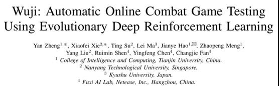 The paper titled Wuji: Automatic Online Combat Game Testing Using Evolutionary Deep Reinforcement Learning, a collaboration between Tianjin University’s College of Intelligence and Computing, Nanyang Technologies University, Kyushu University and Fuxi AI Lab, won the Distinguished Papers Award.