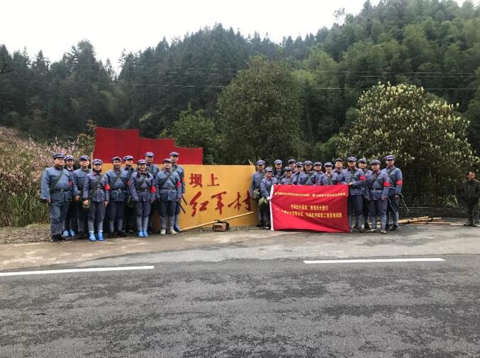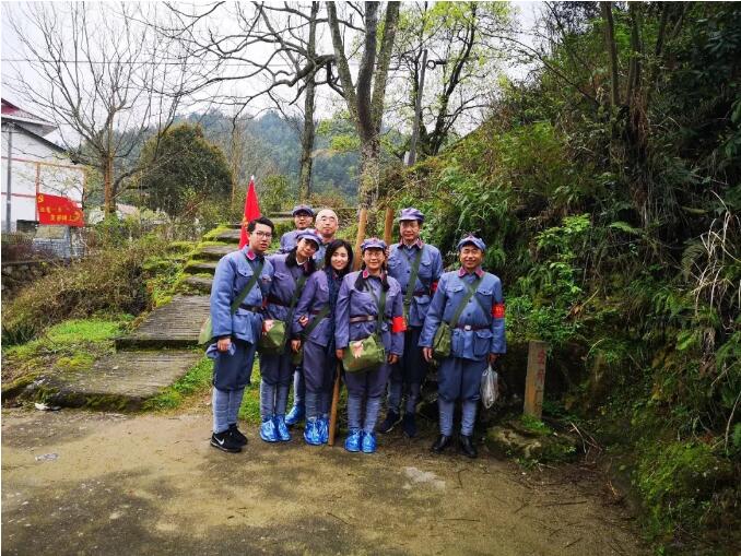 我们穿上红军装,扛上弹药箱,去追寻先辈的足迹。山雨袭来,雨中行军情更迫。急行军,找草药,救伤员,恍惚间我们就在当年的红色队伍当中。正当我们累得上气不接下气的时候,峰回路转,忽见村头两棵大树一面红旗,干净整洁的小二楼点缀在大片的油菜花海中,热情的老乡已经在开门欢迎“红军”了。到了大娘家里,撸起袖子做午饭,红米饭,南瓜汤,秋茄子,味道香。如果没有前两天的经历,对于常年在城里生活的我们来说,类似的雨中行军和农家饭,更多的会是好玩,但这次不一样,经过了前两天的学习,我们满怀的是敬意,是向革命先辈、人民群众的深深地敬意。走在回基地的路上,田间油菜花开,村里炊烟袅袅,山间雾气缭绕,忆往昔战火纷飞,现如今真是“换了人间”。