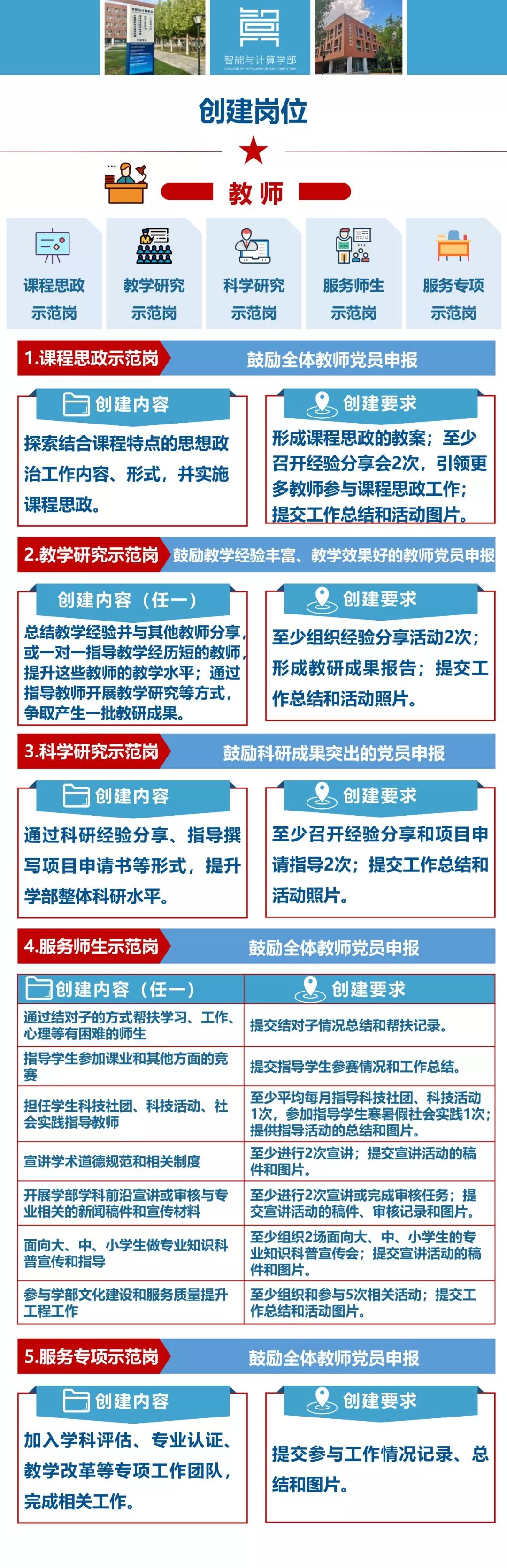 党员示范岗包含五大类教师党员示范岗和七大类学生党员示范岗,今天,通过下图告诉你党员示范岗要这样干!